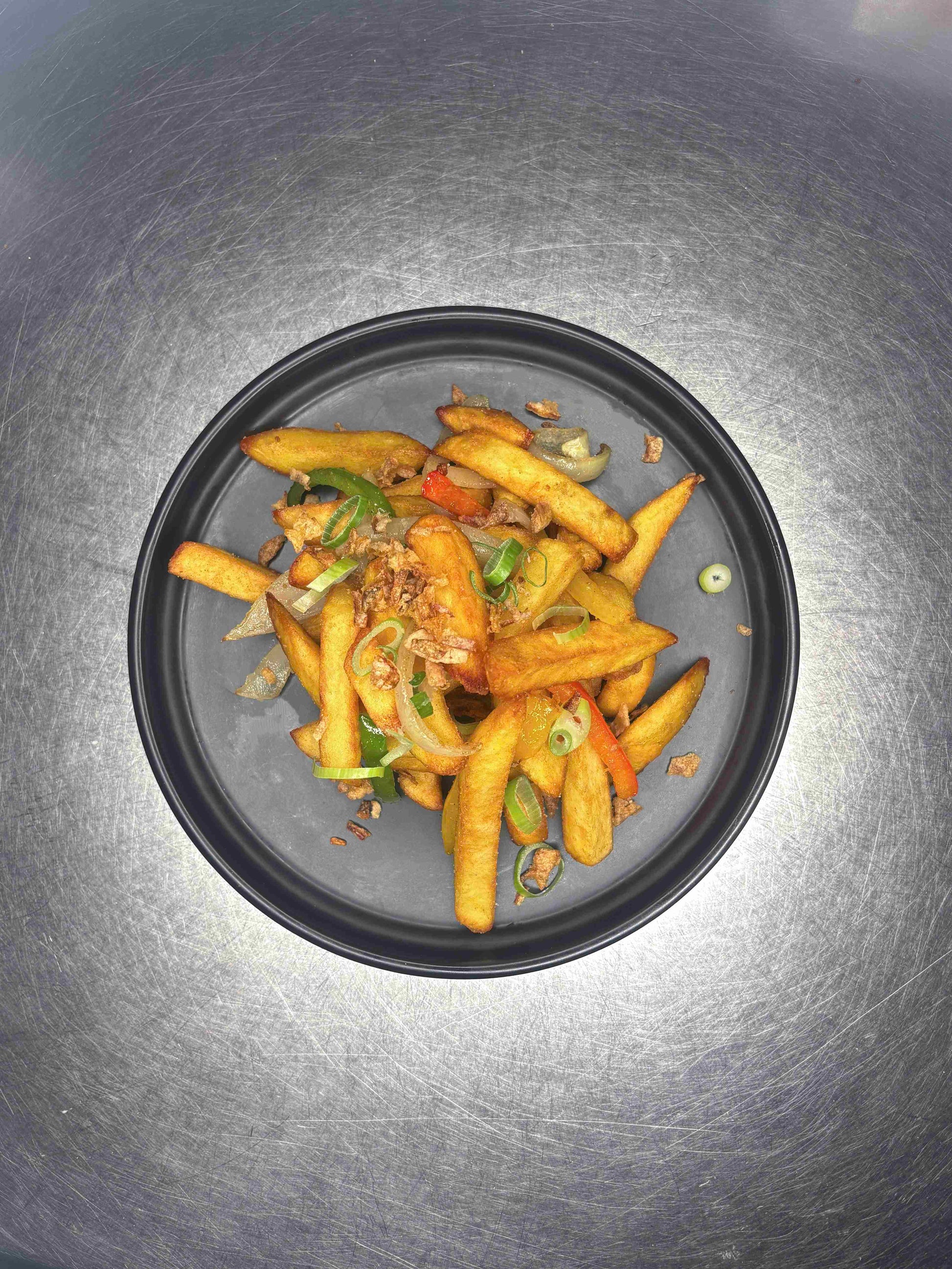 Golden crispy fries cooked with garlic, onion, peppers and seasoned with our house made salt & pepper mix.